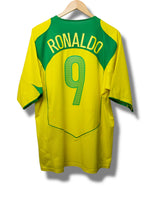 The 2004 Brazil home shirt is a classic representation of the Seleção during a golden era. Featuring the iconic yellow base with green accents, short sleeves, a v-neck, and the embroidered CBF badge, this jersey is a must-have for fans, collectors, and admirers of Ronaldo.