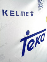 The Real Madrid Home Shirt (1994-1996) is a timeless classic that embodies the elegance and dominance of one of football’s greatest clubs. Designed by Kelme, this iconic jersey features a sleek white base, accented with subtle purple trim, reflecting Real Madrid’s signature style. The Teka sponsor logo, prominently displayed on the chest, completes the look, making it a standout piece from the mid-90s era.