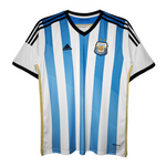 Relive Argentina’s historic 2014 FIFA World Cup journey with the official Argentina Home Shirt 2014, worn by legends like Lionel Messi, Ángel Di María, and Javier Mascherano as they reached the World Cup final in Brazil. Designed by Adidas, this jersey combines tradition and modernity, featuring Argentina’s signature sky blue and white stripes, enhanced with gold details to symbolize their two previous World Cup victories.