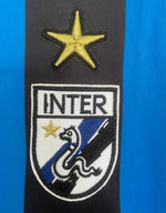 Manufactured by Uhlsport, this jersey stands out with its fold-over collar, the gold star above the badge representing Inter’s 10 Serie A titles, and the legendary Misura sponsor emblazoned across the chest. The soft polyester fabric delivers a vintage look while providing modern comfort, making it perfect for both display and casual wear.